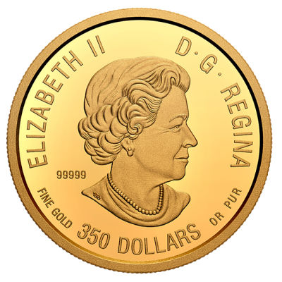 canada-grizzly-35-g-gold-wertseiteLebensecht wirkt das Grizzly-Porträt auf der in höchster Proof-Qualität geprägten Goldmünze. Vom Schimmern des Wassers bis zu den Haaren des Bärenfells ist sie detailreich gestaltet. Sie hat einen Durchmesser von 34 Millimetern und enthält 25 g Feingold, wobei der hohe Feingehalt von 999,99/1000 eine Besonderheit der Serie darstellt. Er ist auf der Wertseite neben dem Susanna-Blunt-Porträt von Königin Elizabeth II. verzeichnet. Unten ist der Nennwert mit 350 CAD angegeben. Das Sammlerstück hat einen geriffelten Rand und wird mit einem nummerierten Echtheistzertifikat ausgegeben. Außerdem ist es natürlich in ein Etui verpackt.