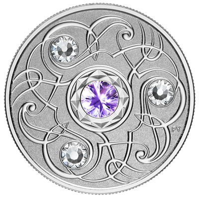 Der äußerst seltene Tansanit wurde für die Silbermünze durch einen blauen Swarovski-Kristall ersetzt, der die tiefblaue Farbe des Originals sehr gut imitiert. Eine Extraportion Glitzer bekommt das Sammlerstück durch die drei kleineren weißen Kristalle, die rund um den Stein in der Mitte angeordnet sind. Sie sind eingebettet in ein von keltischen Triskelen inspiriertes Muster. Die in höchster Proof-Qualität geprägte Silbermünze enthält 1/4 oz Feinsilber (Feingehalt 99,99 Prozent) und hat einen Durchmesser von 27 Millimetern. Auf der Wertseite ist das Susanna-Blunt-Porträt von Königin Elizabeth II. abgebildet. Der Nennwert ist mit 5 CAD angegeben. Der Münzrand ist geriffelt. Ausgegeben wird die Birthstone-Münze mit nummeriertem Echtheitszertifikat, gekapselt und im Etui.
