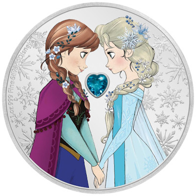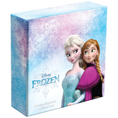 disney-frozen-1-oz-silber-koloriert-edelsteinEin ganz besonderes Wintermärchen diente der New Zealand Mint als Vorlage für ein funkelndes Sammlerstück: Disneys „Die Eiskönigin“. Die neue Silbermünze zeigt die Schwestern Elsa und Anna. Beide sind mit leuchtenden Farbapplikationen gestaltet. Als besonderer Blickfang funkelt zwischen ihnen außerdem ein herzförmiger eisblauer Schmuckstein. Achtung: Die Auflage ist auf nur 3.000 Exemplare limitiert.