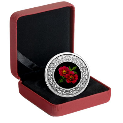 Auf dem Motiv der Silbermünze sind zwei Blüten in ihrer ganzen Pracht zu sehen. Dieses kolorierte und fein gezeichnete Bild ist von einem Rahmen mit Blütenornamenten umgeben. Das nostalgische Design ist von viktorianischen Schmuckstücken inspriert und das Markenzeichen der Serie. Ein Antik-Finish verleiht dem Sammlerstück mit einemDurchmesser von 27 Millimetern und einem Gewicht von 7,96 Gramm den letzten Schliff. Die Silbermünze hat einen Feingehalt von 99,99 Prozent und einen geriffelten Rand. Die Wertseite zeigt das Susanna-Blunt-Porträt von Königin Elizabeth II. und den Nennwert von 3 CAD. Ausgeliefert wird die Silbermünze im Etui und mit nummeriertem Echtheitszertifikat.