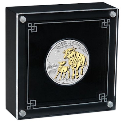 Vergoldete Silbermünze Jahr des Ochsen jetzt kaufen auf Silbertresor.de