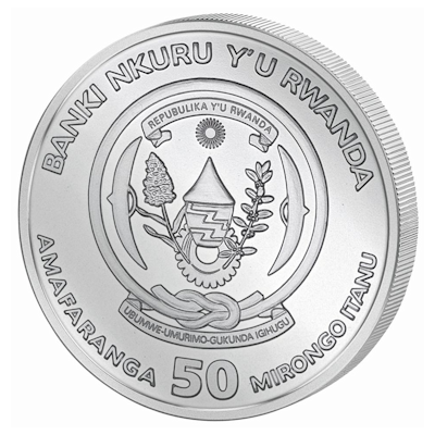 Die Silbermünze hat einen Durchmesser von 40 Millimetern und enthält 1 oz Feinsilber (Feingehalt 999/1000). Der Münzrand ist geriffelt. Die Wertseite zeigt das Wappen des Ausgabelandes, der Republik Ruanda in Ostafrika: Zwei Schilde flankieren einen Korb, über dem die Sonne steht. Daneben sind eine Sorghumpflanze (eine Art Hirse) und eine Kaffeepflanze abgebildet. Der Nennwert von 50 Amafaranga (Ruanda-Francs) ist unten verzeichnet.
