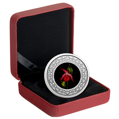 Im Sankt-Lorenz-Golf, vor der Ostküste Kanadas, liegt Prince Edward Island mit seinen roten Stränden und Leuchttürmen. Hier sprießt im Frühling der Rosablütige Frauenschuh (pink lady’s slipper). Diese Orchideenart ist die offizielle Pflanze der Provinz und deshalb auch der Star auf einer Ausgabe der Silbermünzen-Serie Floral Emblems of Canada der Royal Canadian Mint. Das Sammlerstück, dessen Gestaltung an viktorianischen Schmuck erinnert, hat eine limitierte Auflage von 4.000 Stück.