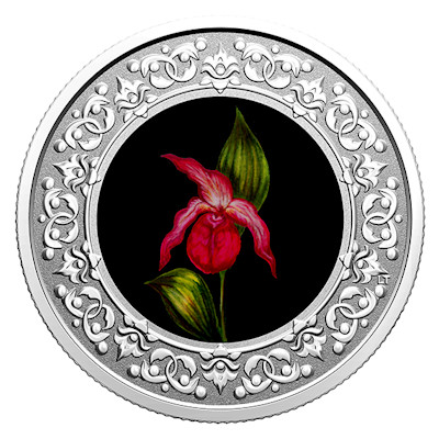 Das Münzmotiv zeigt einen in sanften Rosatönen kolorierten pink lady’s slipper. Umrahmt wird er von filigranen silbernen Blütenornamenten. Dieses Design ist von Schmuckstücken aus viktorianischer Zeit inspiriert. Das Sammlerstück hat einen Durchmesser von 27 Millimetern, ein Gewicht von 7,96 Gramm und einen Feingehalt von 99,99 Prozent. Der Münzrand ist geriffelt. Die Wertseite zeigt das Susanna-Blunt-Porträt von Königin Elizabeth II. Der Nennwert ist mit 3 CAD angegeben. Die Silbermünze wird im Etui und mit einem nummerierten Echtheitszertifikat ausgegeben.