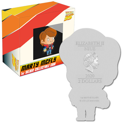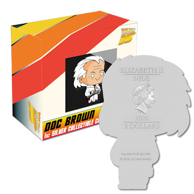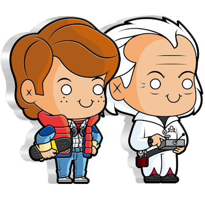 Silbermünzen von Superman bis Harry Potter und vom Stormtrooper bis zum Joker haben manche Chibi-Fans unter den Münzsammlern schon im Regal. Eine ganz besondere Edition fehlt ihnen aber vielleicht noch: Zum 35. Geburtstag des Kino-Klassikers „Zurück in die Zukunft“ hat die australische Perth Mint 2020 zwei besondere Editionen ins Programm genommen: Marty McFly und Doc Brown. Nur 888 Stück sind von diesem Duo zu haben.