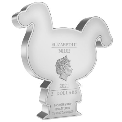 chibi-harley-quinn-1-oz-silber-koloriert-wertseiteIn Schwarz und Rot, mit Maske über den Augen und Glöckchenhaube wirkt die Chibi-Harley wie eine echte Schurkin. Sie ist  31,5 mal 36,0 Millimeter groß und aus 1 oz Feinsilber mit einem Feingehalt von 999/1000 geprägt. Umseitig zeigt die Silbermünze das Ian-Rank-Broadley-Porträt von Königin Elizabeth II. über dem Nennwert von 2 Dollars. Niue ist das Ausgabeland. Das Sammlerstück wird in einem Karton mit Sichtfenster ausgegeben, auf den das nummerierte Echtheitszertifikat aufgedruckt ist.