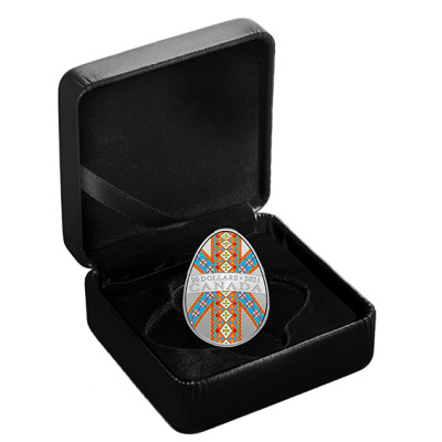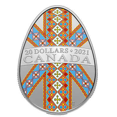 Das Design der Pysanka-Silbermünze 2021 wird von einem hellen Blau dominiert, das an den Frühlingshimmel erinnert. Die Formen und Muster, die traditionell für die Ostereier verwendet werden, haben alle eine Bedeutung. Die Bänder stehen zum Beispiel für Wohlstand und ewiges Leben. Diamanten und Dreiecke symbolisieren Weisheit und Wissen, während die kleinen Punkte die Sterne repräsentieren. Die verschiedenen Kreuze stehen für die vier Himmelsrichtungen und Wegkreuzungen. Auch die Farben haben eine Bedeutung: Rot verheißt zum Beispiel Leidenschaft und Glück, Gelb Reinheit und Licht.