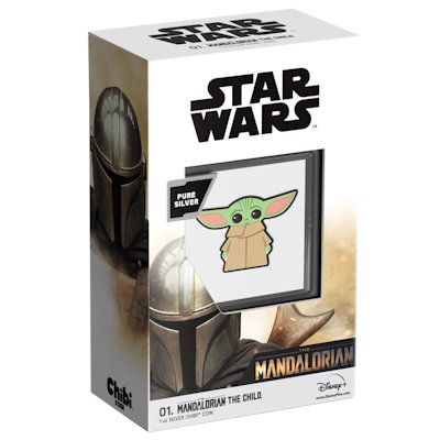In der Chibi Collection der New Zealand Mint reiht Baby Yoda sich unter die Figuren aus den Star-Wars-Filmen ein. Erschienen sind zum Beispiel schon die Ausgaben Luke Skywalker, R2D2, Chewbacca und Darth Vader. Außerdem umfasst die Collection DC Superhelden und Harry-Potter-Charaktere sowie Figuren aus Der Herr der Ringe.