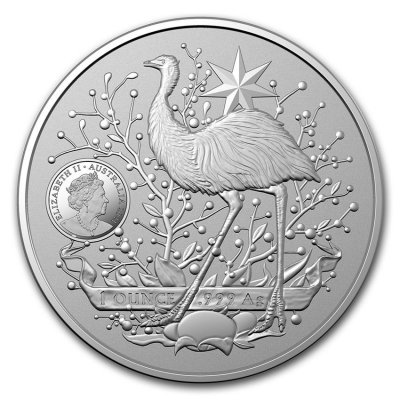 Während die Wertseite mit der Nennwertangabe von einem Dollar ganz dem Känguru gehört, muss sich der Emu, der sein Gelege bewacht, seine Münzseite mit dem stark verkleinerten Porträt von Königin Elizabeth II. teilen. Auch das Gewicht von 1 oz und der Feingehalt von 999/1000 sind hier angegeben. Die Silbermünze in BU-Prägung hat einen Durchmesser von 40 Millimetern und einen geriffelten Rand. Sie wird einzeln gekapselt ausgegeben.