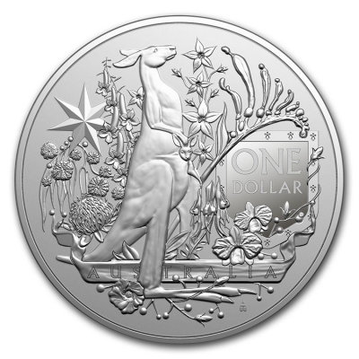 Seit 1908 hat Australien ein eigenes Wappen. 1912 wurde das Design noch einmal angepasst, seither ist es unverändert. Auf dem Motiv der Silbermünze spielen die beiden Schildhalter des Wappens die Hauptrolle: das Känguru auf der Wertseite, umseitig der Emu. Beide wurden nicht nur deahlb ausgewählt, weil sie so typisch für die Fauna down under sind, sondern auch, weil sie von Natur aus nicht rückwärts gehen können. Damit sollen sie den Fortschritt des Landes symbolisieren. Die Nationalblume – die Gold-Akazie – bildet den Hintergrund beim Coat of Arms. Auf der Silbermünze der Royal Australian Mint sind sämtliche offiziellen Blumensymbole der australischen Bundesstaaten und der beiden Territorien abgebildet: Waratah, Epacris impressa, Queensland-Orchidee, Känguru-Blume, Wüstenerbse, Blauer Eukalyptus, Gossypium sturtianum und Wahlenbergia gloriosa. Der Commonwealth-Stern, der beim Original über dem Wappenschild erstrahlt, wird hier von den verschiedenen Gewächsen umrankt.