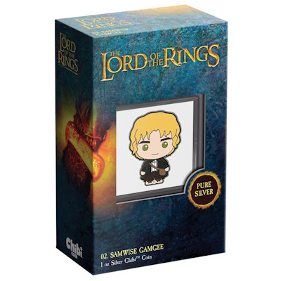 Blonde Haare, grüne Augen – und haarige Füße: So kennen Fans Sam Gamgee aus der Herr-der-Ringe-Trilogie. Gespielt wurde er von Sean Astin. Als Frodos treuester Begleiter ist Sam der einzige, der mit dem Ringträger sogar bis nach Mordor geht. Dabei ist er als echter Hobbit eigentlich gar kein Abenteurer, sondern am glücklichsten, wenn er daheim im Auenland seinen Garten pflegen kann. Aber wenn es darauf ankommt, ist er eben auch in der Lage, über sich hinauszuwachsen. Der Cibi-Sam trägt seinen Elbenmantel und eine Tasche. Entschlossen, aber freundlich blickt er dem Betrachter entgegen. Er besteht aus 1 oz Feinsilber (Feingehalt: 999/1000) und ist 31,5 mal 36,0 Millimeter groß. Der Münzrand ist glatt.
