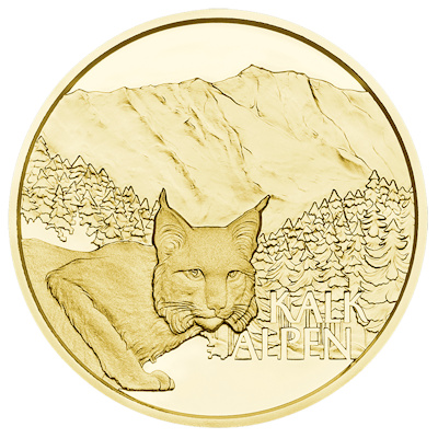 naturschatz-alpen-wald-gold-oesterreichDer Nationalpark Kalkalpen in Oberösterreich verfolgt ein ehrgeiziges Ziel: Hier soll wieder ein richtiger Urwald entstehen – mitten in Europa. Ein Teil der Bergwälder in dem Gebiet bleibt deshalb schon jetzt völlig sich selbst überlassen. Das ist ideal für die vielfältige Pflanzen- und Tierwelt der Region. Mehrere Luchse haben in der Region ihr Zuhause – anders als die Katze auf dem Motiv der Goldmünze lassen sie sich jedoch kaum blicken. Bevor Wanderer oder Mountainbiker sie erspähen können, haben die Tiere die Eindringlinge schon längst bemerkt und sich in das weite Meer der Wälder zurückgezogen, aus dem die Berggipfel aufragen.