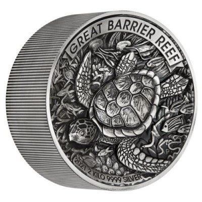 Einen großen Schatz hat die Perth Mint jedes Jahr für die Silber-Sammler im Programm: zwei Kilogramm schwer, in beeindruckendem High Relief geprägt und mit Antik-Finish veredelt. Nachdem bereits die australischen Ikonen Kangaroo, Koala und Kookaburra auf diesem Prachtstück abgebildet waren, kommt 2021 ein ganz besonderer Star an die Reihe – das Great Barrier Riff. Die Auflage ist auf nur 200 Exemplare limitiert.