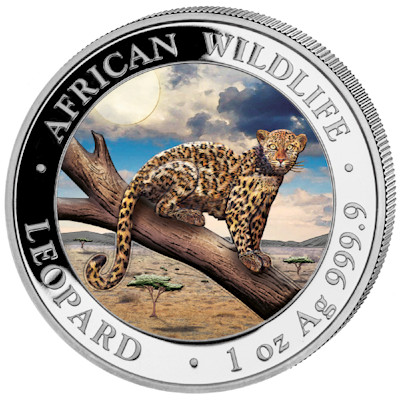 Kolorierte Silbermünze African Wildlife Leopard 2021 jetzt kaufen auf Silbertresor.de
