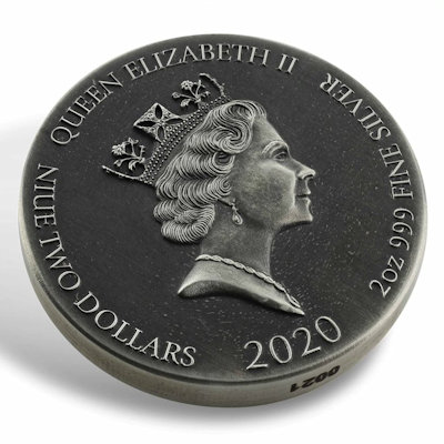Gustave Doré verlieh dem Missfallen der Zuhörer durch Details wie verschränkte Hände, gerunzelte Brauen und abgewandte Gesichter Ausdruck. Dank der hochwertigen Prägung kommt vieles davon auch auf der Silbermünze gut zur Geltung. Den letzten Schliff gibt das Antik-Finish. Das Sammlerstück aus 2 oz Feinsilber (Feingehalt: 999/1000) hat einen Durchmesser von 39 Millimetern. Der Münzrand ist glatt mit eingravierter Seriennummer. Die Wertseite zeigt neben dem Nennwert von zwei Dollars das Porträt der Königin Elizabeth II. von Raphael Maklouf. Als Ausgabeland fungiert Niue. Auch das Etui der Silbermünze passt perfekt zum Thema: Es ist wie eine ledergebundene Bibel gestaltet.
