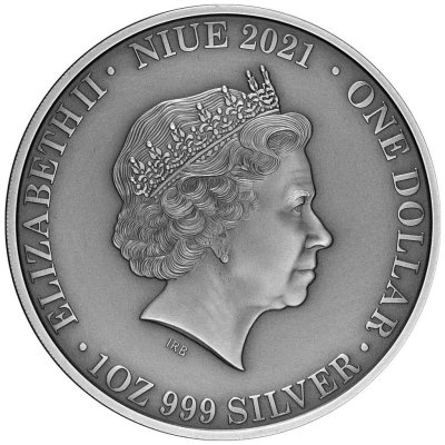Neben dem Tier im Vordergrund sind, eingebettet in eine karge Landschaft, zwei Kängurus im Hintergrund aufgeprägt. Bei einem davon handelt es sich um eine Mutter mit einem Jungtier im Beutel. Das Antik-Finish veredelt die Szene. Die Silbermünze enthält 1 oz Feinsilber bei einem Feingehalt von 999/1000. Der Durchmesser liegt bei 38,60 Millimetern. Der Münzrand ist geriffelt. Umseitig findet man den Nennwert von 1 Dollar, zusammen mit einem Porträt von Königin Elizabeth II., die das offizielle Staatsoberhaupt des Ausgabelandes Niue ist. Das Sammlerstück wird gekapselt, im Etui und mit nummeriertem Echtheitszertifikat ausgeliefert. Außerdem ist es in einen Shipper verpackt, der das Münzmotiv aufgreift.