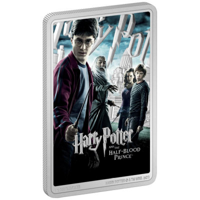 Das Motiv der Silbermünze zeigt das Filmplakat von Harry Potter und der Halbblutprinz aus dem Jahr 2009. Silberprägung und dunkle Kolorierung sorgen für reizvolle Kontraste und vermitteln die beklemmende Stimmung der Geschichte. Hinter Harry Potter, der mit erhobenem Zauberstab im Vordergrund abgebildet ist, steht Dumbledore im Mittelpunkt des Motivs. Rechts sind Ron und Hermine zu sehen. Das Sammlerstück ist in höchster Proof-Qualität geprägt und enthält 1 oz Feinsilber (Feingehalt 999/1000). Es ist 36 mal 53 Millimeter groß. Die Wertseite zeigt das Rank-Broadley-Porträt von Königin Elizabeth II. unter dem Ausgabeland Niue und über dem Nennwert von 2 Dollars. Der Münzrand ist geriffelt. Verpackt ist die Silbermünze in ein Etui aus Plexiglas, in dem sie sich gut geschützt präsentieren lässt. Ein nummeriertes Echtheitszertifikat und eine Umverpackung im Harry-Potter-Design gibt es auch noch dazu.
