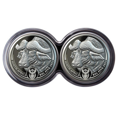 Die Münzserie Big Five der South African Mint machte vor allem mit der Gestaltung ihrer Wertseite von sich reden. Zwei Hälften des jeweiligen Tierkopfs animieren dazu, mehrer der Sammlerstücke zu erwerben und nebeneinander anzuordnen. Die beste Gelegenheit dafür bietet ein Silbermünzen-Set mit Doppelkapsel, das jetzt auch zur finalen Ausgabe mit dem Büffel erhältlich ist. Die Auflage dieses exklusiven Proof-Sets ist streng limitiert auf nur 1.000 Stück.