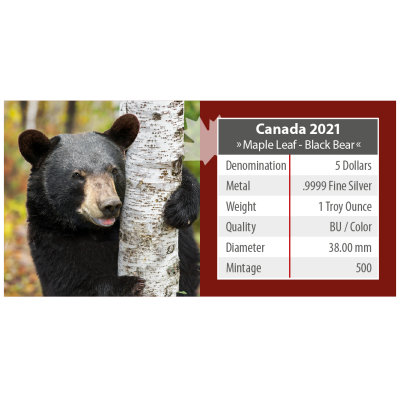 In der Serie sind bereits die Silbermünzen Elch, Polarfuchs, Bison und Schneeeule erschienen. Für Bärenfans gibt es außerdem noch eine zweite Sonderserie der Maple Leaf, die sie auf die Spur des Schwarzbären bringt.