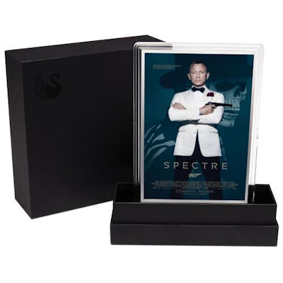 Das Filmplakat wurde für dieses Sammlerstück auf Silberfolie übertragen. Unter dem Titel ist das 007-Logo abgebildet, das sich auch umseitig wiederfindet, zusammen mit Angaben zum Gewicht von 5 g und dem Feingehalt von 999/1000. Das Sammlerstück ist 148 Millimeter hoch und 98 Millimeter breit. Es ist in ein Acryletui eingebettet und lässt sich mit Hilfe der Verpackung aufstellen. Auch die anderen Bond-Filme mit Craig in der Hauptrolle – Casino Royale, Ein Quantum Trost und Skyfall – sind als Sammlerausgaben zu haben.