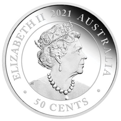 dreaming-down-under-dingo-half-oz-silber-koloriert-wertseiteAbgerundet wird das Motiv durch einige australische Blüten und Pflanzen. Ein Schmetterling, eine Biene und ein Vögelchen leisten dem Welpen Gesellschaft. Die Silbermünze enthält 1/2 oz Feinsilber und hat einen Feingehalt von 99,99 Prozent. Sie ist in höchster Proof-Qualität geprägt. Die Wertseite zeigt das Jody-Clark-Porträt von Königin Elizabeth II. und den Nennwert von 50 australischen Cents. Der Münzrand ist geriffelt. Das Sammlerstück wird in einem Präsentationsetui mit durchsichtigem Deckel und einem zum Design der Münze passenden Shipper ausgegeben. Außerdem gehört ein nummeriertes Echtheitszertifikat dazu.