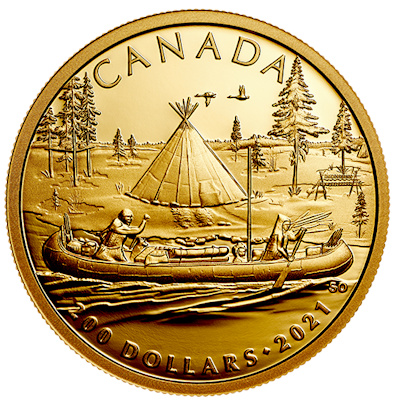 Das Kanu voll beladen macht sich die Nishiiyuu-Familie auf den Weg zu einem der europäischen Handelsposten: Mit der Goldmünze Fur Trade (Fellhandel) wirft die Royal Canadian Mint einen Blick in Kanadas frühe Geschichte, lange bevor die Kolonien sich zu einer Nation zusammenschlossen. Das Sammlerstück aus einer halben Unze Feingold hat eine limitierte Auflage von 1.200 Stück und bietete Fans der Geschichte der kanadischen Ureinwohner viele spannende Details.