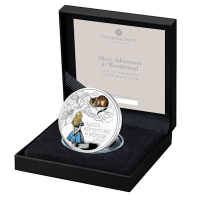 „Wenn du nicht weißt, wohin du willst, führt dich jeder Weg dorthin.“ Diesen Rat bekommt Alice von der Grinsekatze, einer der berühmtesten Figuren aus Lewis Carrolls Buch Alice im Wunderland. Diese Szene hat die britische Royal Mint für die erste Ausgabe ihrer zweiteiligen Alice-Serie ausgewählt. Fans der Nonsense-Geschichte haben die Wahl zwischen verschiedenen Ausgaben, darunter die kolorierte Silbermünze mit einer Auflage von nur 3.500 Exemplaren.