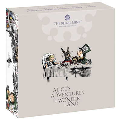 Die Silbermünze ist in höchster Proof-Qualität hergestellt und mit zarten Farben koloriert. Sie hat einen Durchmesser von 38,61 Millimetern und enthält 1 oz Feinsilber (Feingehalt: 999,9/1000). Die Wertseite zeigt das Porträt von Königin Elizabeth II. und den Nennwert von 2 Pfund. Der Münzrand ist glatt mit Prägung. Ausgeliefert wird das Sammlerstück mit einem nummerierten Echtheitszertifikat, im Etui und verpackt in einen Shipper, der mit weiteren Illustrationen gestaltet ist. Hier findet man zum Beispiel den verrückten Hutmacher und den Märzhasen. Die Royal Mint gibt Käufern außerdem einen Tipp, zu welchem Anlass sich dieses Sammlerstück am besten verschenken lässt – zum Nichtgeburtstag.