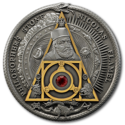 Den Namen Nicolas Flamel kennen viele aus Harry Potter und der Stein der Weisen – doch die meisten wissen sie nicht, dass es wirklich eine historische Person dieses Namens gab. Der echte Flamel lebte vom 14. bis Anfang des 15. Jahrhunderts in Paris und war auf die Herstellung wertvoller Handschriften spezialisiert. Später geriet er in den Ruf, ein erfolgreicher Alchemist gewesen zu sein. Als solchen feiert ihn jetzt auch eine aufwendig gestaltete Silbermünze mit Swarovski-Kristall, Antik-Finish und High-Relief-Prägung. Die Auflage ist auf 500 Stück limitiert.