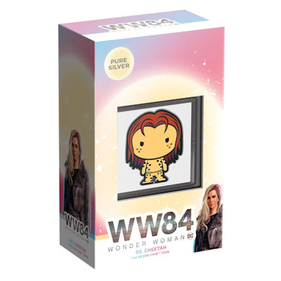 Die 31,5 mal 36,0 Millimeter große Chibi-Cheetah ist an ihrer gefleckten Haut zu erkennen. Das Sammlerstück enthält 1 oz Feinsilber und hat einen Feingehalt von 999/1000. Auf der Wertseite findet man das Porträt der Königin Elizabeth II. von Ian Rank-Broadley und den Nennwert von zwei Dollars. Das Ausgabeland ist Niue. Der Münzrand ist glatt. Die Silbermünze wird in einer Umverpackung mit Sichtfenster ausgeliefert. Auf dieser ist neben dem Logo des Films Wonder Woman 1984 auch ein Bild von Kristen Wiig in der Rolle der Cheetah zu sehen.