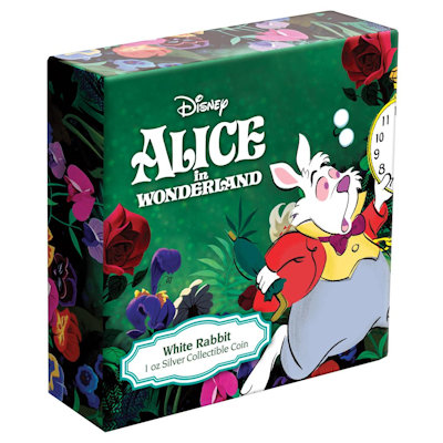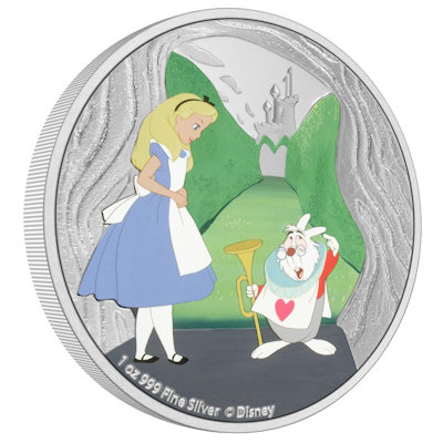 Disney-Silbermünze Alice im Wunderland – das weiße Kaninchen