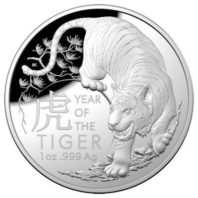 Wer im Jahr des Tigers geboren ist, gilt als mutig, entschlossen und großzügig. Tiger-Jahre waren zum Beispiel 2010, 1998, 1986, 1974, 1962, 1950, 1938 und 1926. Zu den berühmtesten Tigern gehört Königin Elizabeth II., aber auch Marilyn Monroe, Romy Schneider oder Leonardo DiCaprio sind unter diesem Zeichen geboren. Der Tiger auf dem Motiv der Silbermünze wirkt gleichzeitig kraftvoll und elegant. Sein Körper schmiegt sich an das Münzrund, während neben ihm die Aufschrift „Year of the Tiger“ und das entsprechende chinesische Schriftzeichen zu finden sind.
