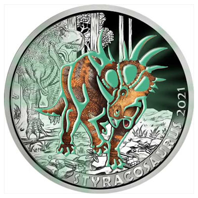 Buntmetallmünze Styracosaurus jetzt bestellen auf Silbertresor.de