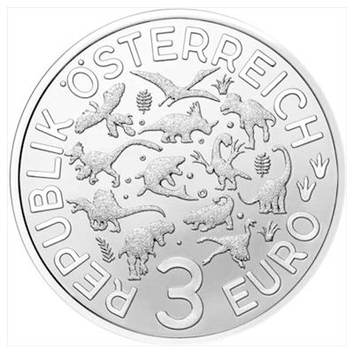 Der kolorierte Dino, dessen Name unten randläufig verzeichnet ist, ist von der Flora der Epoche umgeben. Betrachtet man das Sammlerstück im Dunkeln, leuchten seine Umrisse nach. Umseitig findet man den Nennwert von 3 Euro umrahmt von scherenschnittartigen Darstellungen aller zwölf Dinosaurier und Flugsaurier, die in dieser Serie erscheinen. Die Buntmetallmünze hat ein Gewicht von 16 Gramm und einen Durchmesser von 34 Millimetern. Die Auflage ist auf 65.000 Stück limitiert.