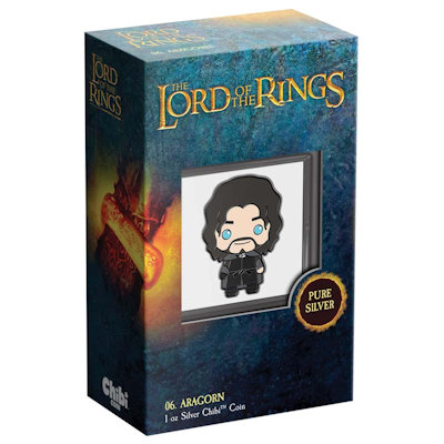 Als Streicher, der Waldläufer, wird Aragorn in Der Herr der Ringe vorgestellt. Ein zwielichtiger Geselle, bei dem die Hobbits zunächst nicht sicher sind, ob sie ihm überhaupt vertrauen können. Doch die Leser und Filmzuschauer erfahren bald, das unter der schäbigen Hülle eigentlich ein König steckt. Der Aragorn, der als Vorbild für die neue Chibi-Silbermünze der New Zealand Mint ausgewählt wurde, hat schon einen Schritt in Richtung Thron gemacht und trägt den Elbenmantel aus Lothlorien.