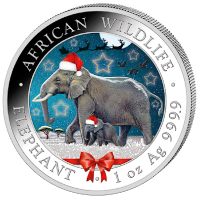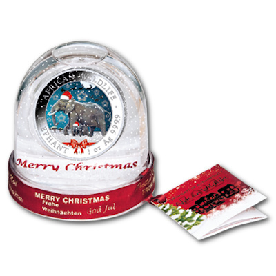 Ein Weihnachtsgeschenk für die Romantiker unter den Numismatik-Fans ist die Sonderedition der Silbermünze African Wildlife Elephant. Nicht nur, dass das Sammlerstück in eine Schneekugel verpackt ist, die Elefanten haben sich zusätzlich passend zum Anlass herausgeputzt. Santa Claus schaut natürlich auch noch vorbei! Und die afrikanische Savanne ist von einer dicken Schneedecke bedeckt. Mehr Weihnachtsstimmung auf einer Münze geht nicht!
