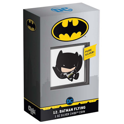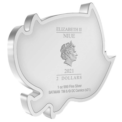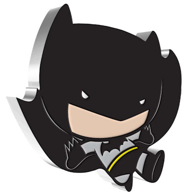 Der Mini-Batman ist 35,8 mal 36,0 Millimeter groß. Er enthält 1 0z Feinsilber bei einem Feingehalt von 999/1000 und ist in höchster Proof-Qualität geprägt. Trotz der ungewöhnlichen Form handelt es sich um eine Silbermünze mit offiziellem Ausgabeland – Niue – und einem Nennwert von 2 Dollars. Auf der Wertseite des Sammlerstücks findet man das Porträt der Königin Elizabeth II. von Ian Rank-Broadley. Verpackt ist Chibi-Batman wie sein Vorgänger in ein Etui mit Batman-Logo und Sichtfenster, sodass er sich gut ausstellen lässt. Das nummerierte Echtheitszertifikat befindet sich auf der Verpackung. Inzwischen sind auch viele weitere Chibi-Silbermünzen zu haben, etwa Figuren aus Star Wars, Harry Potter und Herr der Ringe sowie echte Disney-Klassiker.