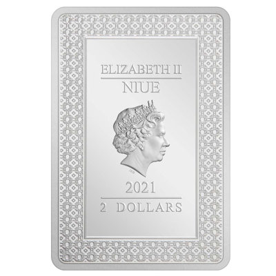 Die 53 mal 36 Millimeter große Silbermünze ähnelt mit dem silbernen Rahmen um das kolorierte Motiv stark einer echten Spielkarte. Sie ist in höchster Proof-Qualität geprägt und enthält 1 oz Feinsilber (Feingehalt: 999/1000). Die Wertseite zeigt das von einer Bordüre eingerahmte Porträt von Königin Elizbaeth II. Das Sammlerstück trägt den Nennwert von 2 Dollars und hat einen geriffelten Rand. Als Ausgabeland fungiert Niue. Die Silbermünze wird in einem buchartigen Etui mit Informationen zur Bedeutung der Karte ausgegeben. Ein Echtheitszertifikat gehört mit dazu.
