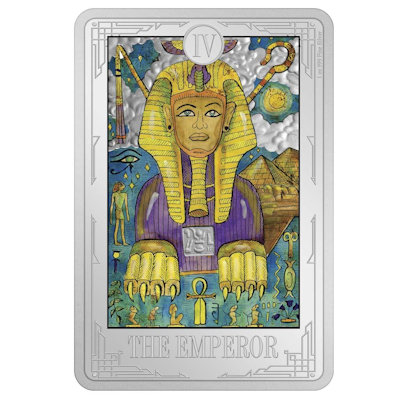 Auf die Herrscherin folgt beim Tarot direkt ihr männlicher Gegenpart, der Herrscher, englisch Emperor. Er ist das ultimative Symbol der weltlichen Macht und wird meistens als gealterter, aber mächtiger König dargestellt, der auf einem mit Widderköpfen dekorierten Thron sitzt und unter seinen Gewändern eine Ritterrüstung trägt. Er wird mit dem Planeten Mars und dem Sternzeichen Widder in Verbindung gebracht. Die Designer der New Zealand Mint haben sich jedoch für eine etwas andere Darstellung entschieden und entführen die Betrachter ins alte Ägypten. Der Herrscher ist eine mächtige Sphinx mit den Pyramiden und verschiedenen Hieroglyphen im Hintergrund. Unten zwischen seinen Löwentatzen ist ein Ankh abgebildet. Oben ist die Zahl IV aufgeprägt.