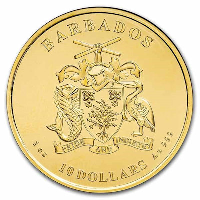 Die in Stempelglanz-Qualität geprägte Goldmünze enthält 1 oz Feingold bei einem Feingehalt von 999/1000 und hat einen Durchmesser von 32,70 Millimetern. Sie trägt den Nennwert von 10 Dollars. Auf der Wertseite ist das Wappen des Ausgabelands Barbados aufgeprägt. Es zeigt eine Goldmakrele und einen Pelikan, die einen Wappenschild mit einem Bartfeigenbaum unter zwei Cesalpinienblüten halten. Auf dem Schild liegt ein Helm, hinter dem eine Hand mit zwei gekreuzten Zuckerrohrstangen zum Vorschein kommt. Darunter ist das Motto „Pride and Industry“ (Stolz und Fleiß) auf einem Spruchband zu lesen. Ausgegeben wird die Goldmünze mit dem geriffelten Rand gekapselt, im Etui inklusive Echtheitszertifikat.