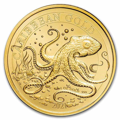 Gold aus der Karibik lockte früher Freibeuter und Piraten. Heute ist es für Anleger und Münzsammler zu haben. Neben dem Seepferdchen steht für sie in der Serie Caribbean Gold mit Ausgabeland Barbados ein weiterer Meeresbewohner zur Auswahl: Der Oktopus beeindruckt mit einem dynamisch gestalteten Motiv. Die Goldmünze aus einer Unze Feingold hat eine streng limitierte Auflage von nur 100 Exemplaren.