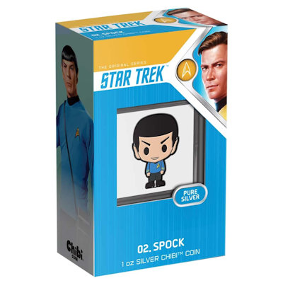 chibi-star-trek-spock-1-oz-silber-koloriert-verpackungVon 1965 bis zu seinem Tod 2015 war der Schauspieler Leonard Nimoy ein halbes Jahrhundert lang als Mister Spock bekannt. Er spielte den Wissenschaftsoffizier in Raumschiff Enterprise und später einen altersweisen Botschafter Spock in den Star-Trek-Kinofilmen. Und obwohl der schwarzhaarige Vulkanier mit dem peniblen Pony wie es auf seinem Heimatplaneten üblich ist, keine Emotionen zeigt, sondern stets als die Stimme der Vernunft auftritt, eroberte er schnell die Herzen unzähliger Fans.