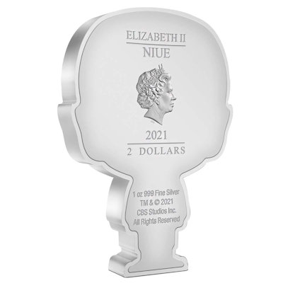 chibi-star-trek-spock-1-oz-silber-koloriert-wertseiteDiese werden ihn gern auch in ihre Münzsammlung einschließen. Als Chibi-Silbermünze ist er 24,74 mal 36,0 Millimeter groß und koloriert. Spock enthält 1 oz Feinsilber bei einem Feingehalt von 999/1000. Auf der silbernen Wertseite findet man das Porträt der Königin Elizabeth II. von Ian Rank-Broadley über dem Nennwert von zwei Dollars und unter dem Ausgabeland Niue. Hier ist auch ein Copyright-Hinweis aufgeprägt, der die Figur als Eigentum der CBS Studios ausweist. Das Sammlerstück ist in einen Karton mit Sichtfenster verpackt, auf den auch das nummerierte Echtheitszertifikat aufgedruckt ist.