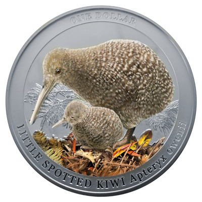 kiwi-2022-1-oz-silber-koloriertFast kugelrund ist das Kiwi-Küken auf der neuen Silbermünze der New Zealand Post. Und damit nicht genug: Seine feinen Federn wirken unwiderstehlich flauschig. Das Küken und auch der Vater-Vogel an seiner Seite gehören zu der seltensten der fünf Kiwi-Arten, die heute noch existieren – dem Zwergkiwi (Apteryx owenii). Seltenheitswert hat auch dieses kolorierte Sammlerstück: Nur 2.500 Exemplare sind davon zu haben.