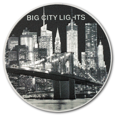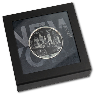 Die Skyline von New York ist eines der bekanntesten Motive der Welt. Am Tag beeindruckend, entfalten die beleuchteten Wolkenkratzer doch erst vor dem Nachthimmel ihre ganze Pracht. Dieses Bild, das immer wieder fesselt, können sich Münzsammler nun auf Silber nach Hause holen. Die kolorierte Silbermünze Big City Lights hat einen extragroßen Durchmesser, der dieses Panoramas würdig ist. Nur 2022 Stück sind von diesem Sammlerstück für New-York-Fans zu haben.