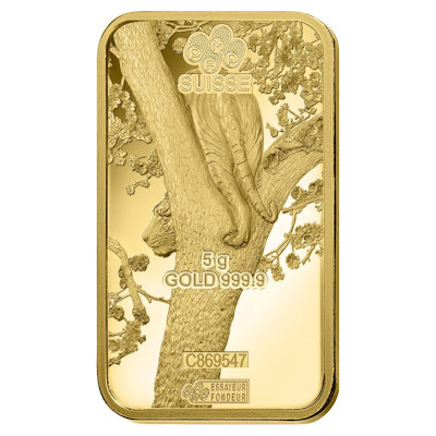 pamp-gold-jahr-des-tigersDie PAMP ist bekannt für ihre hochwertigen Bullionprodukte. Die Mondkalender-Serie ist da natürlich keine Ausnahme. Jedes Jahr gibt es eine neue Ausgabe – nach der Ratte zum Auftakt und dem Ochsen ist jetzt der Tiger an der Reihe. Laut Unternehmen ist dieses Tierkreiszeichen besonders mit Reichtum und Überfluss verbunden, was für das Jahr des Tigers, das am 1. Februar 2022 begann, nur Gutes bedeuten kann. Das Motiv des Goldbarrens zeigt einen Tiger beim Klettern in einem Baum. Elegant schiebt sich die große Raubkatze zwischen den Ästen hindurch. Unten findet man das chinesische Schriftzeichen mit der Bedutung Tiger.