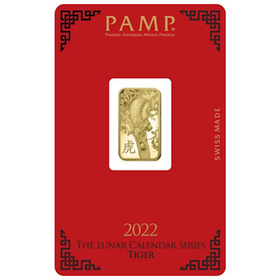 pamp-gold-jahr-des-tigers-3Rote Verpackung, die Zahl Acht in der Auflage und dann noch ein beidseitiges Design passend zum Jahr des Tigers 2022: Die Goldbarren des schweizer Unternehmens PAMP (Produits Artistiques Métaux Précieux) sind ein idealer Glücksbringer für Goldanleger und dazu noch ein echter Blickfang – von vorn wie von hinten. Nur 3.888 Exemplare sind davon erhältlich.