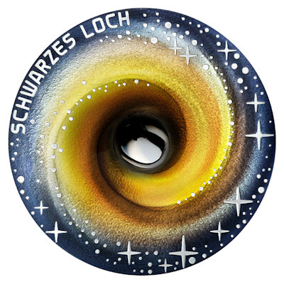 Das Design dieser Silbermünze reißt die Betrachter direkt in den Strudel des Schwarzen Loches. Thema und Gestaltung gehen auf dem Sammlerstück der Münze Österreich eine faszinierende Verbindung ein – wie schon bei der ersten Ausgabe der Serie Faszination Universum, die die Milchstraße zeigt. Die kolorierte Silbermünze mit dem Nennwert von 20 Euro hat eine limitierte Auflage von 30.000 Exemplaren.