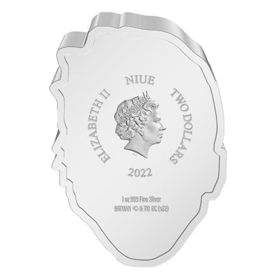 Die Silbermünze präsentiert sein Gesicht genauso zweigeteilt, wie es aus den Comics bekannt ist. Die rechte Hälfte ist der gutaussehende, schwarzhaarige Harvey Dent, die linke eine entstellte Fratze mit hervorquellendem Auge und weißem, zu Berge stehendem Haar. Das Sammlerstück ist 36,00 mal 26,34 Millmeter groß und enthält 1 oz Feinsilber bei einem Feingehalt von 999/1000. Das Porträt der Königin Elizabeth II. von Ian Rank-Broadley steht auf der Wertseite im Mittelpunkt. Daneben findet man den Nennwert von 2 Dollars. Als Ausgabeland fungiert Niue. Die Silbermünze hat einen glatten Rand und wird gekapselt ausgegeben. Verpackt ist sie in ein Etui mit Sichtfenster. Ein nummeriertes Echtheitszertifikat gehört dazu.