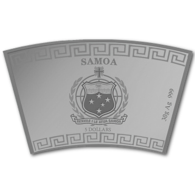 Der Hase auf der Silbermünze wirkt aufmerksam und zu allem bereit. Er sitzt im Gras, in dem sich auch das passende chinesische Schriftzeichen versteckt. Die Silbermünze aus 30 g Feinsilber hat einen Feingehalt von 999/1000. Sie ist Prooflike geprägt und einzeln gekapselt. Die Wertseite zeigt das Wappen des Ausgabelands Samoa – einen Schild mit dem Sternbild Kreuz des Südens, Meereswellen und einer Kokospalme darauf. Der Schild ist umrahmt von Olivenzweigen und gekrönt von einem Kreuz. Darunter ist der Nennwert von 5 Dollars verzeichnet.